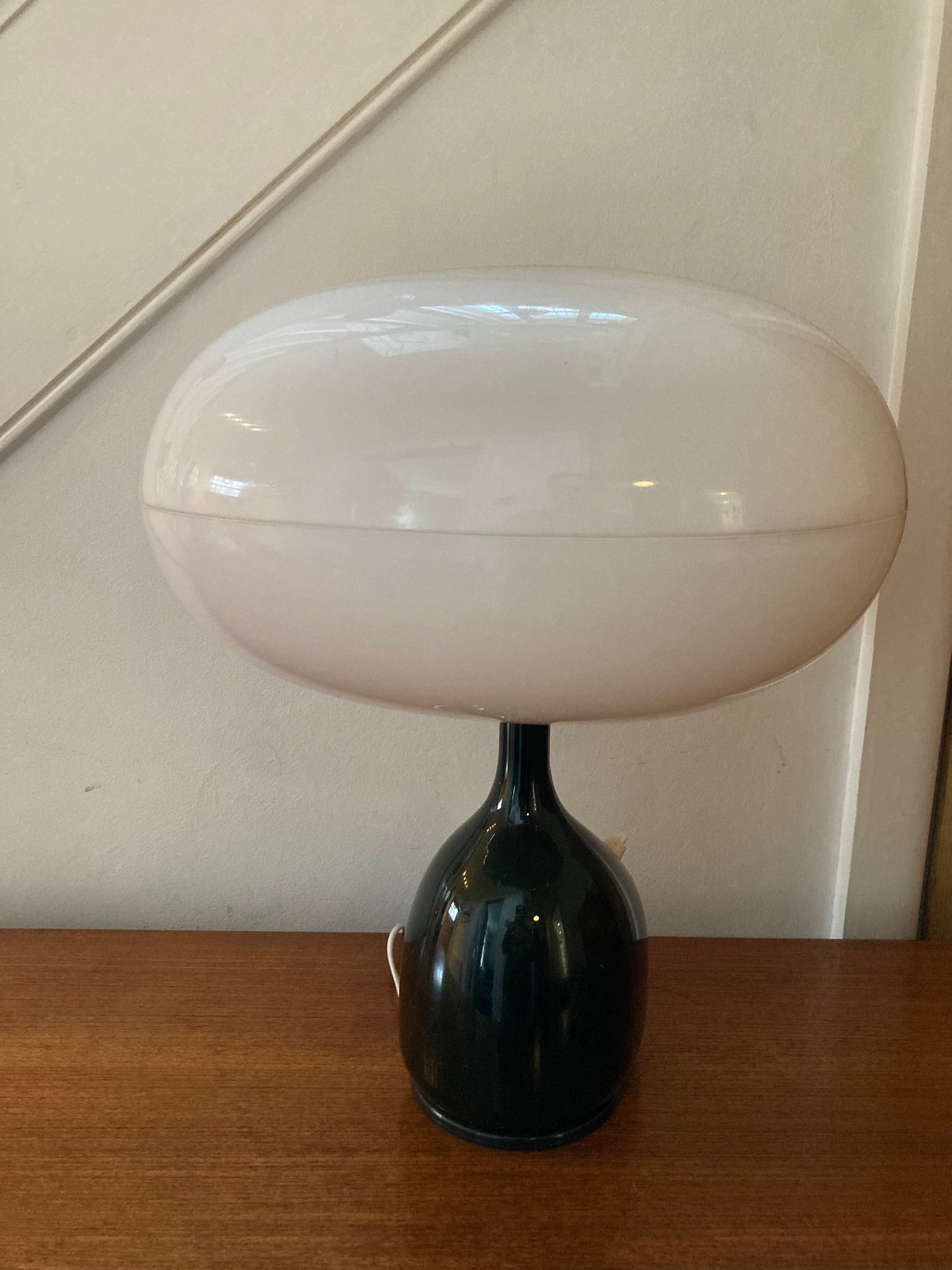 The elegant lamp base is quite heavy and provides a safe stand. The slightly translucent dark green foot. The version in milk-coloured plexiglass creates a warm, uniform light.