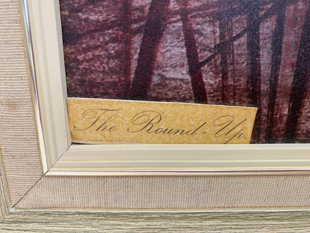 MID CENTURY FRAMED LITHOGRAPH 'THE ROUND UP'