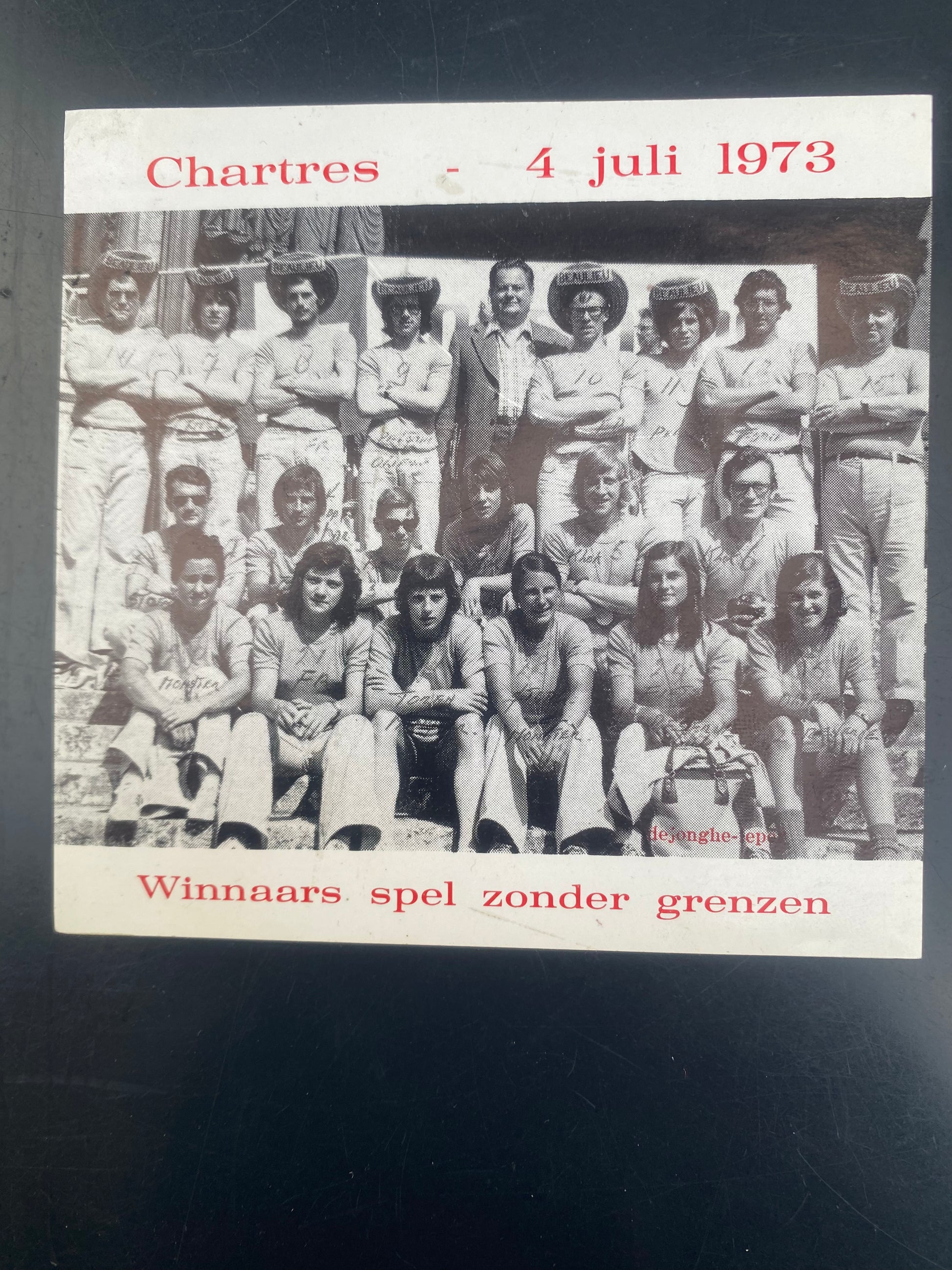 Flemish Belgium Sticker Chartres 4 Juli 1973 Winnaars spel zonder grenzen