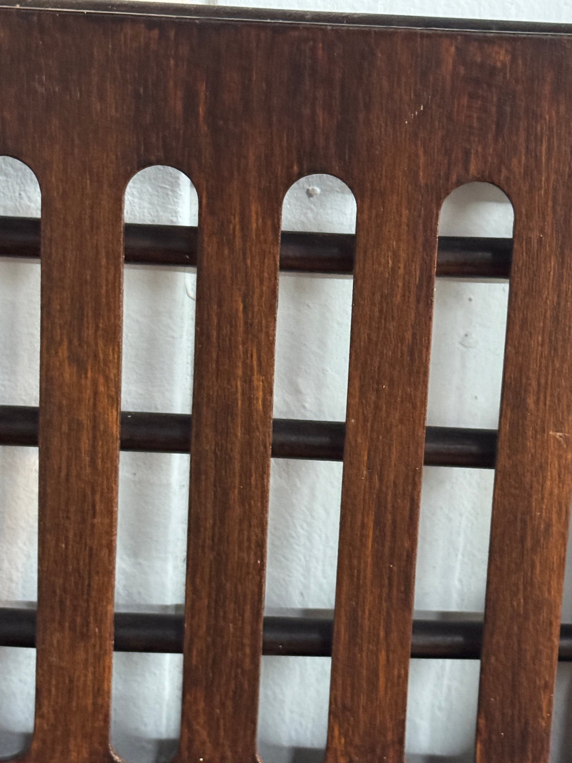 The design reflects Braakman’s signature approach to functional elegance, featuring clean architectural lines and a practical folding X-frame construction that allows the rack to be easily stored when not in use. The openwork central panel and horizontal slats create a visually light yet sturdy form, making it both practical and sculptural.