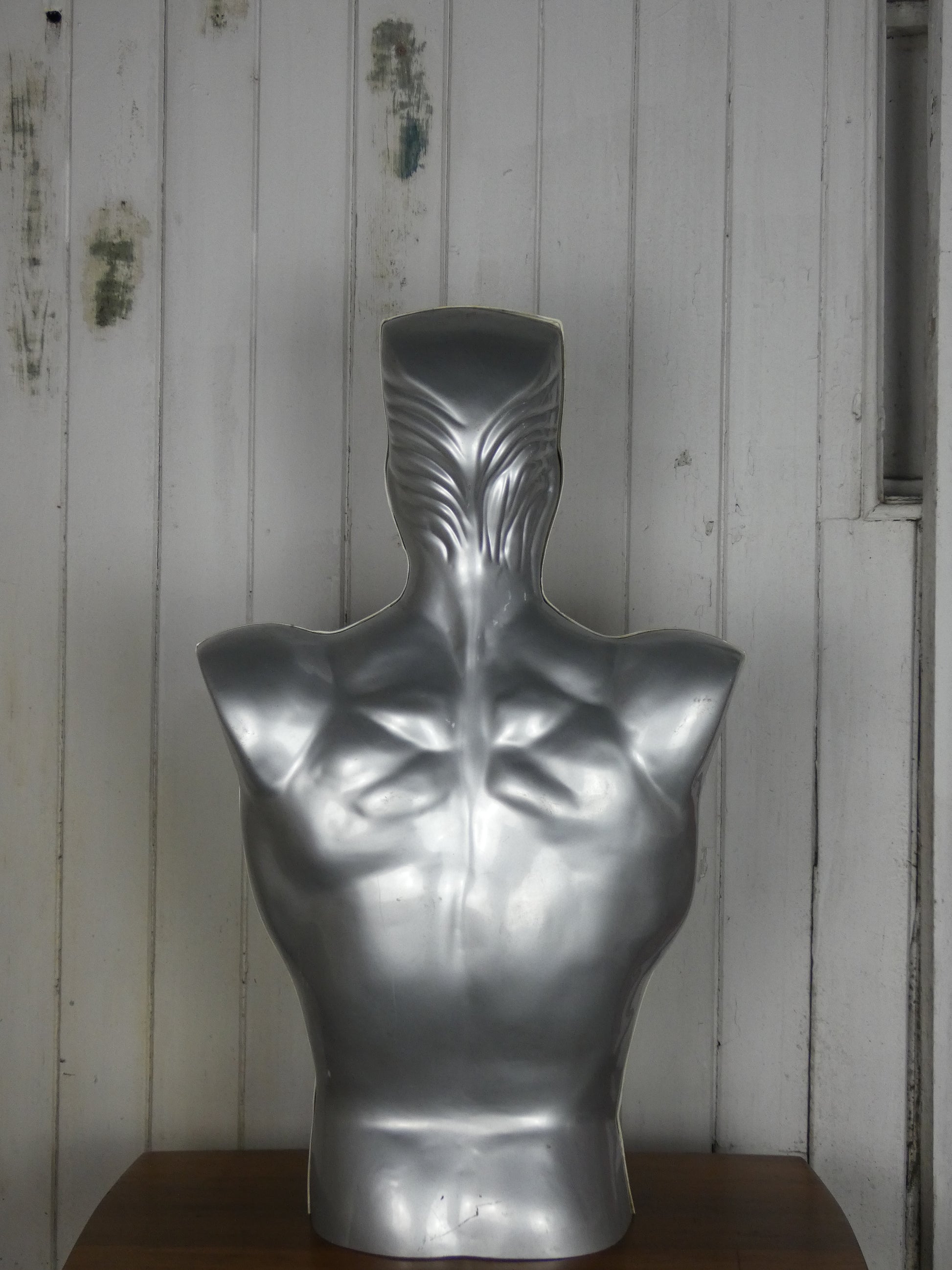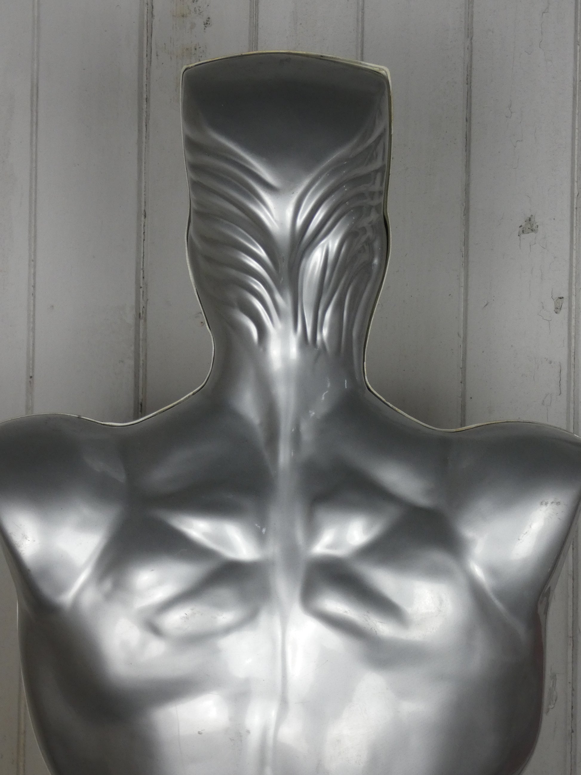 Vintage 1980s Metallic Silver Male Mannequin – Muscular Form, LGBTQ+ Art Interest