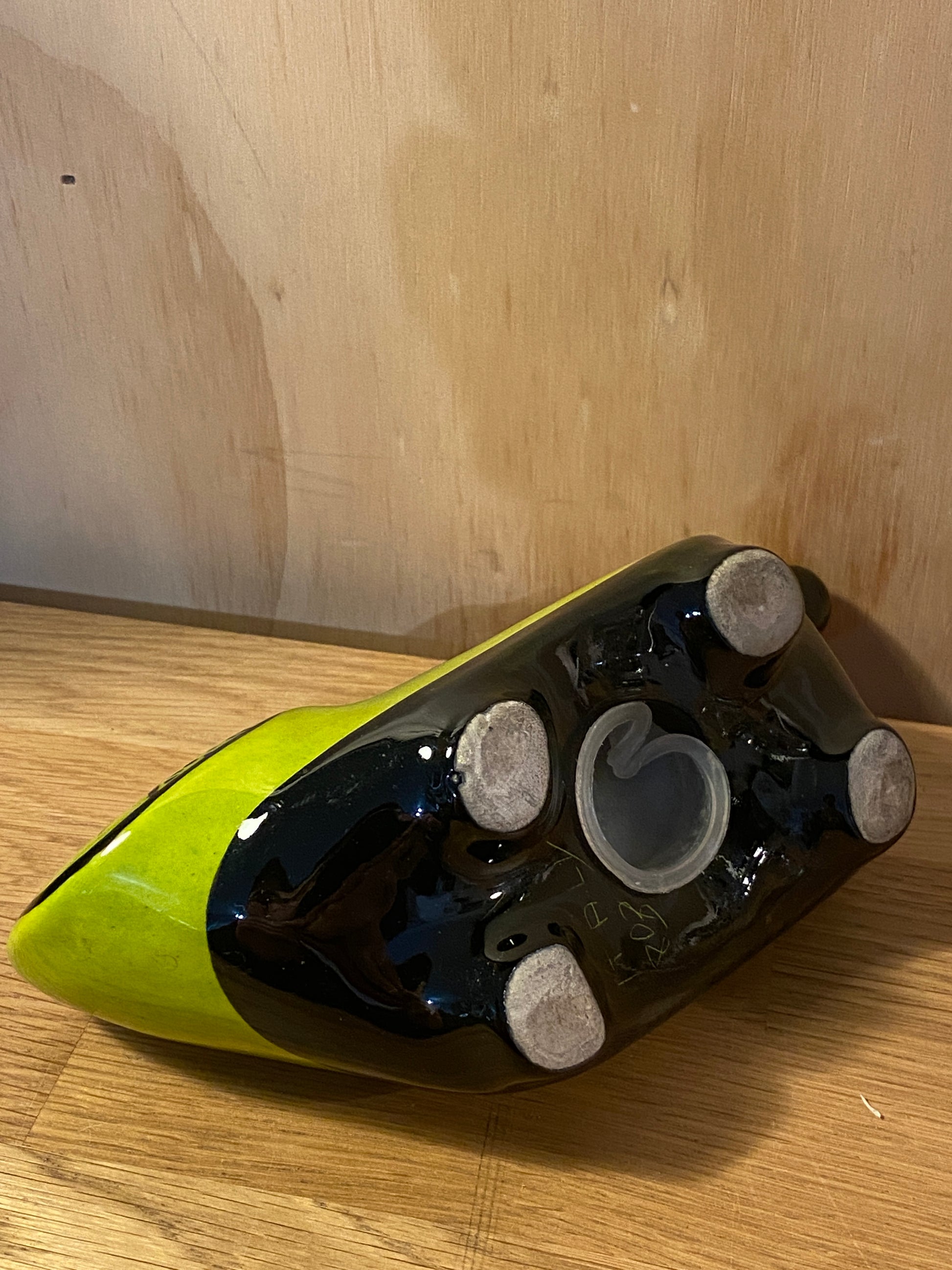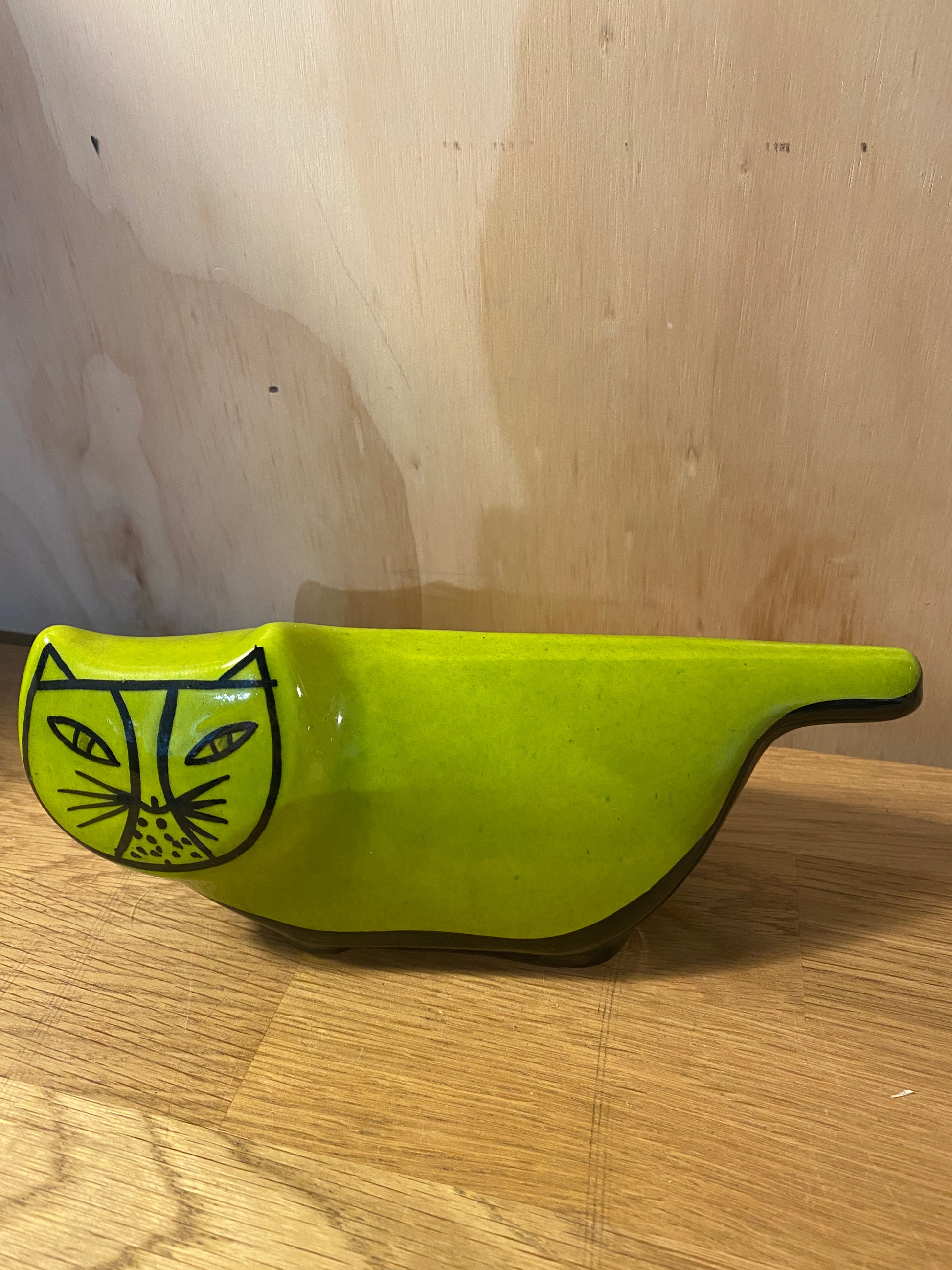 Vintage Mid century Modern Baldelli figural lime green Cat bank Italian ceramic MCM