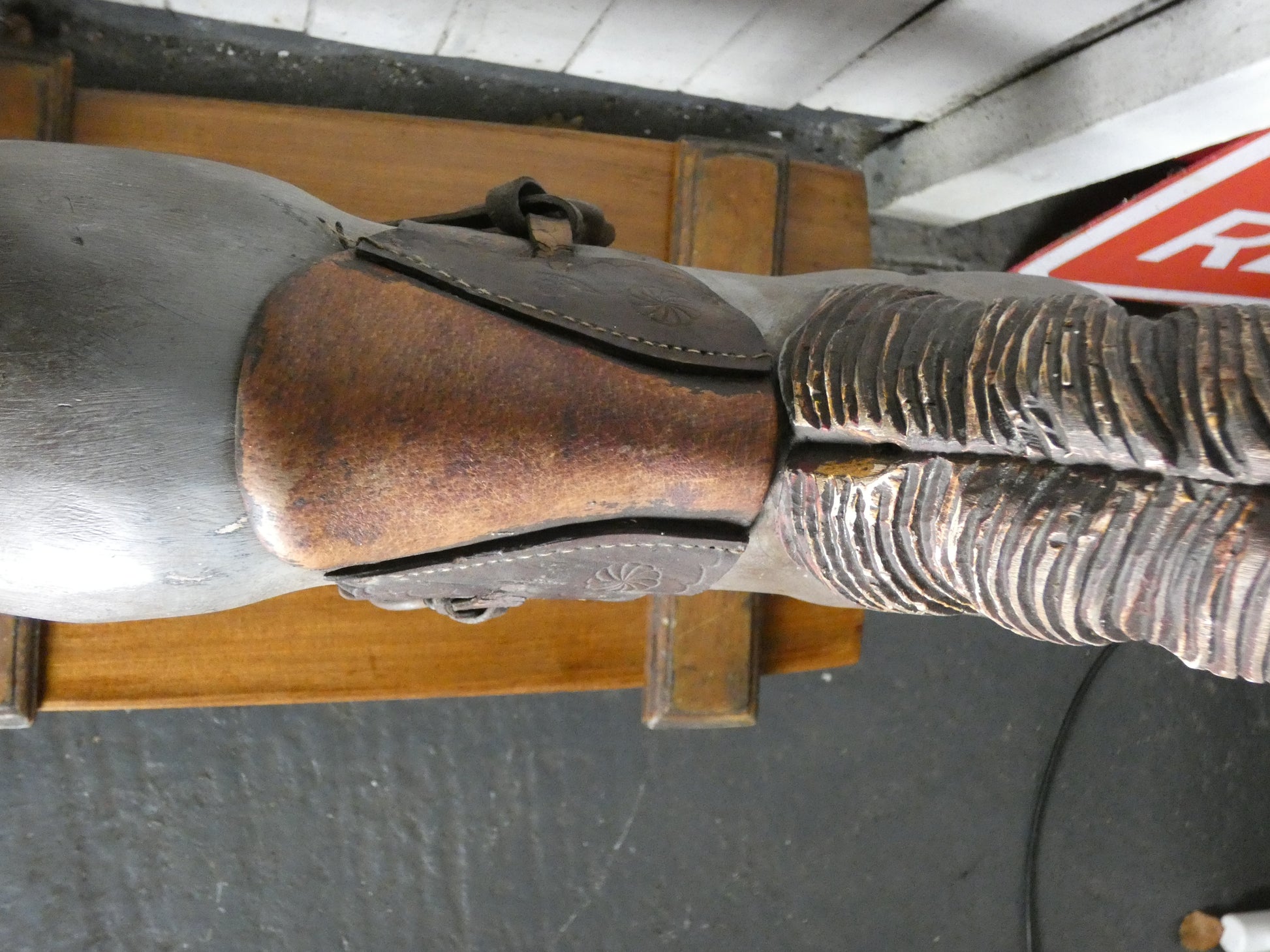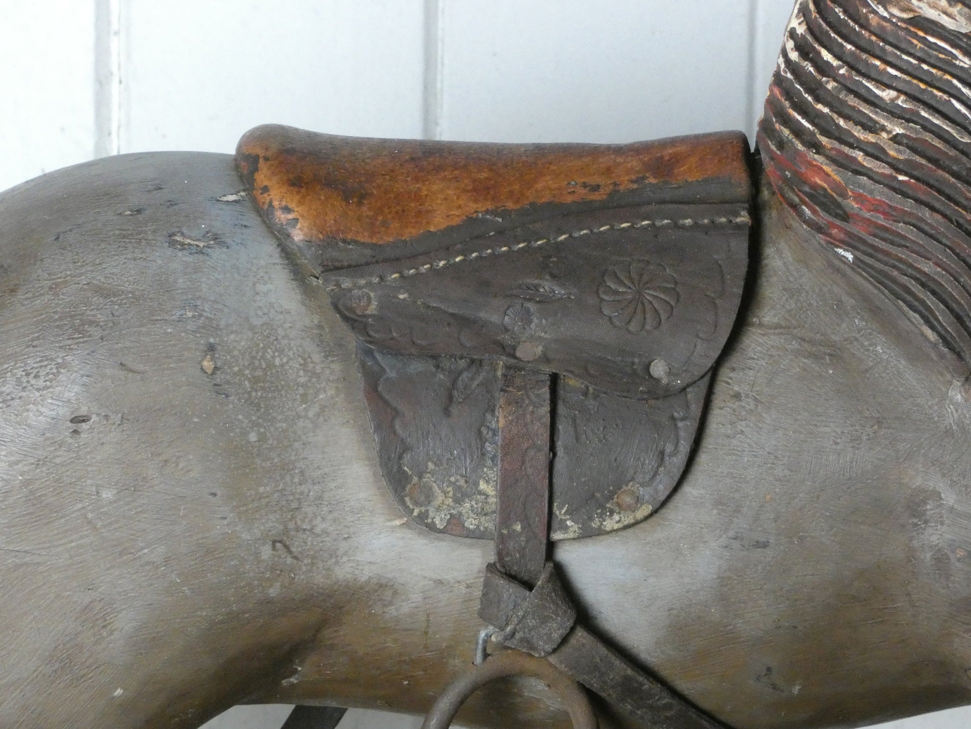 This vintage miniature rocking horse is a charming collectible, crafted with care and featuring a natural horsehair tail for authentic detail. Mounted on a sturdy rocking stand, it embodies the timeless appeal of classic toy design and folk art craftsmanship.